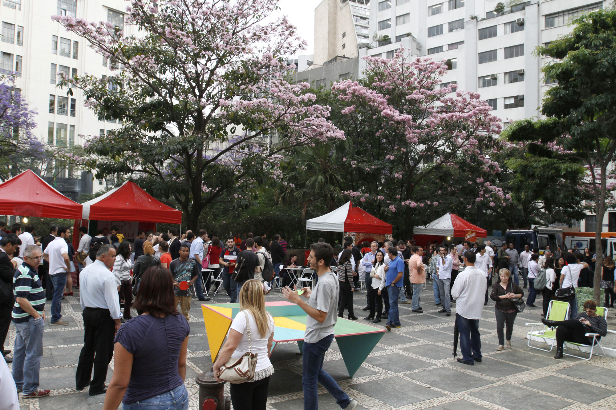 Transformação dos espaços públicos é temporária, mas permite que as pessoas vivenciem as mudanças imaginadas para longo prazo e participem das discussões em torno de alternativas urbanísticas para a área central