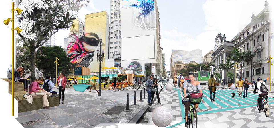 Apesar de provisórias, transformações dos espaços públicos permitirão que os cidadãos vivenciem as mudanças imaginadas para longo prazo e participem das discussões em torno de alternativas urbanísticas para a área central
